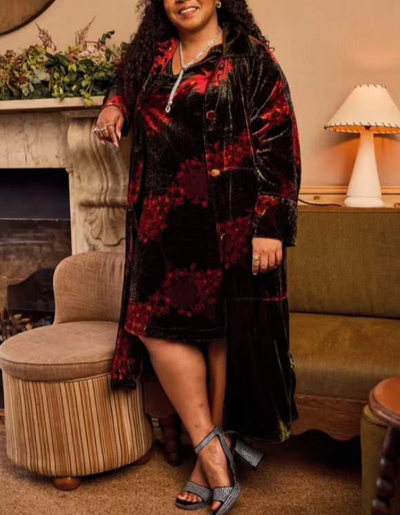 Velvet Mix Dress In Green Print 726247